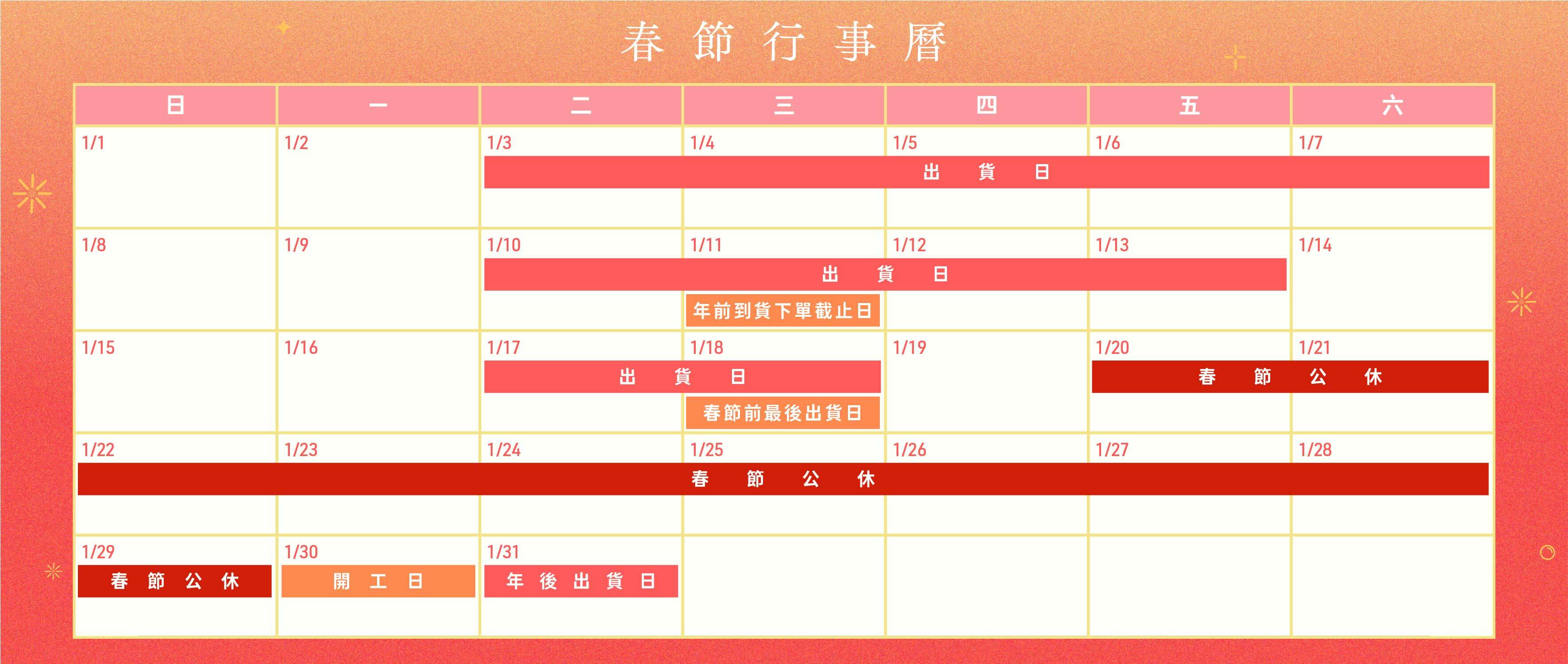 📌 1/31 春節優惠最後一天、開工後第一個出貨日。
